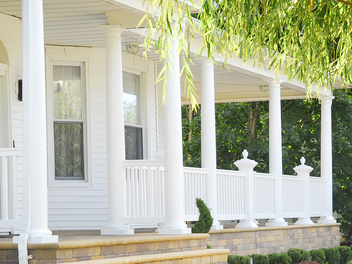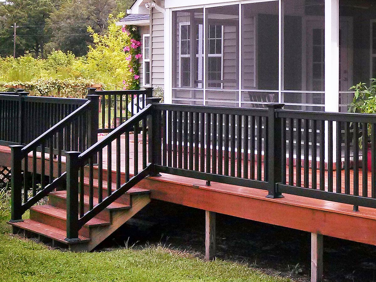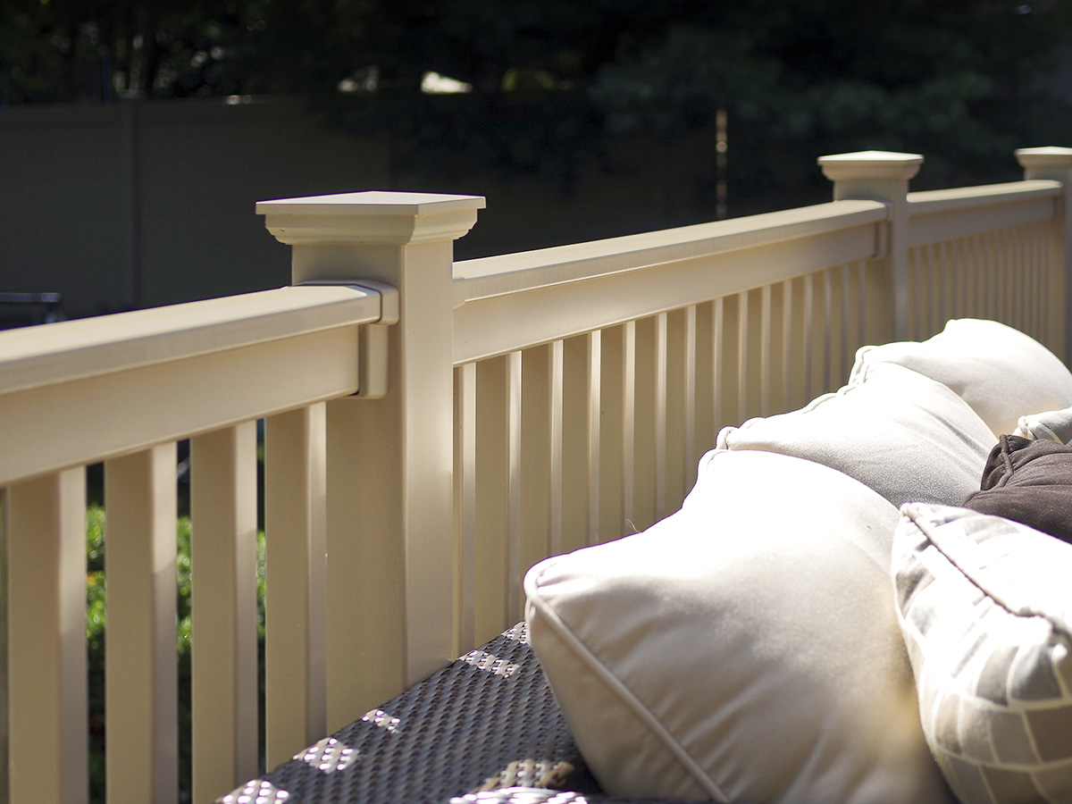 We offer several types of railings in a variety of materials, including wood, aluminum, vinyl, and ornamental steel. Our team can help you pick the best railing for your outdoor living space.